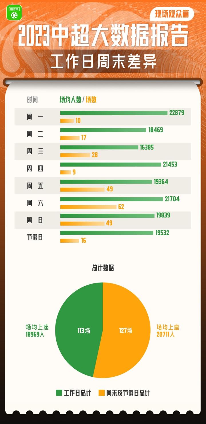 而从上座数据来看,安排在非工作日的比赛平均上座人数为20711,比安排在工作日的比赛平均上座人数要高1742人。