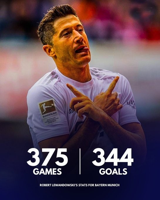 波兰人为拜仁效力了八个赛季,在一共十二年的德甲生涯中共打进了312球。只有盖德-穆勒的365球能与之媲美。