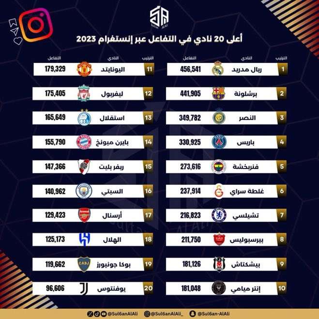 懂球帝首页>动态> 懂球号> 2023年,利雅得胜利在全球ins上每条帖子互动...