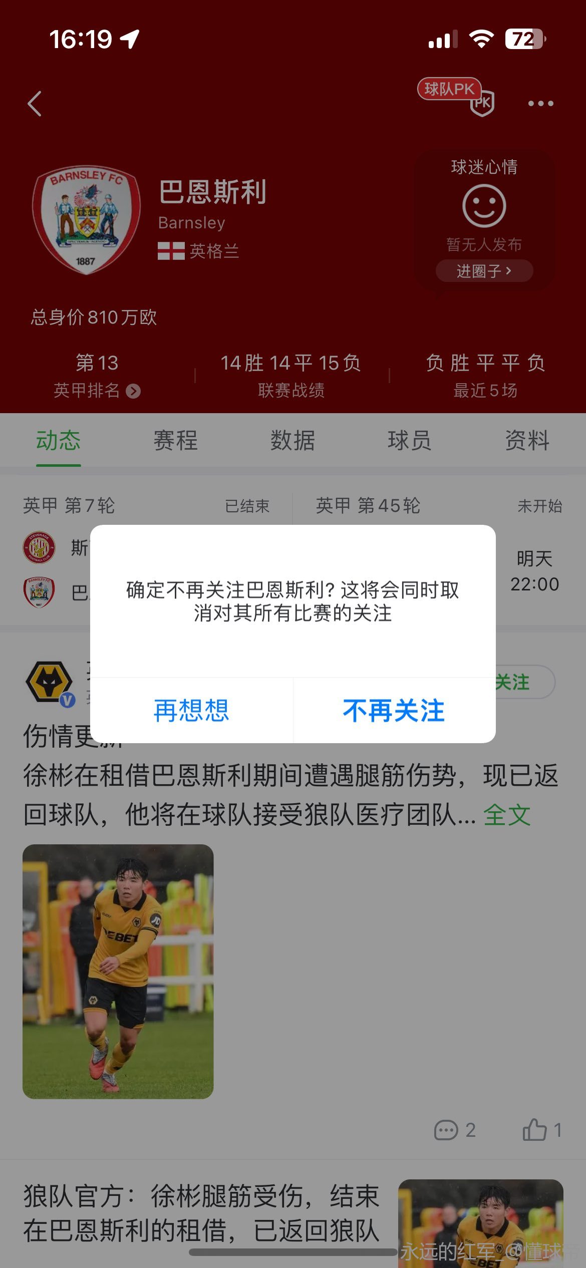 04-24 16:58伤情更新徐彬在租借巴恩斯利期间遭遇腿筋伤势,现已...