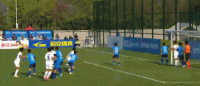 第16分钟,周玉铭与队友配合后破门,江苏常晋1-0济南林凯赛福