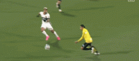 第32分钟,三丸扩踢人犯规,裁判出示黄牌警告