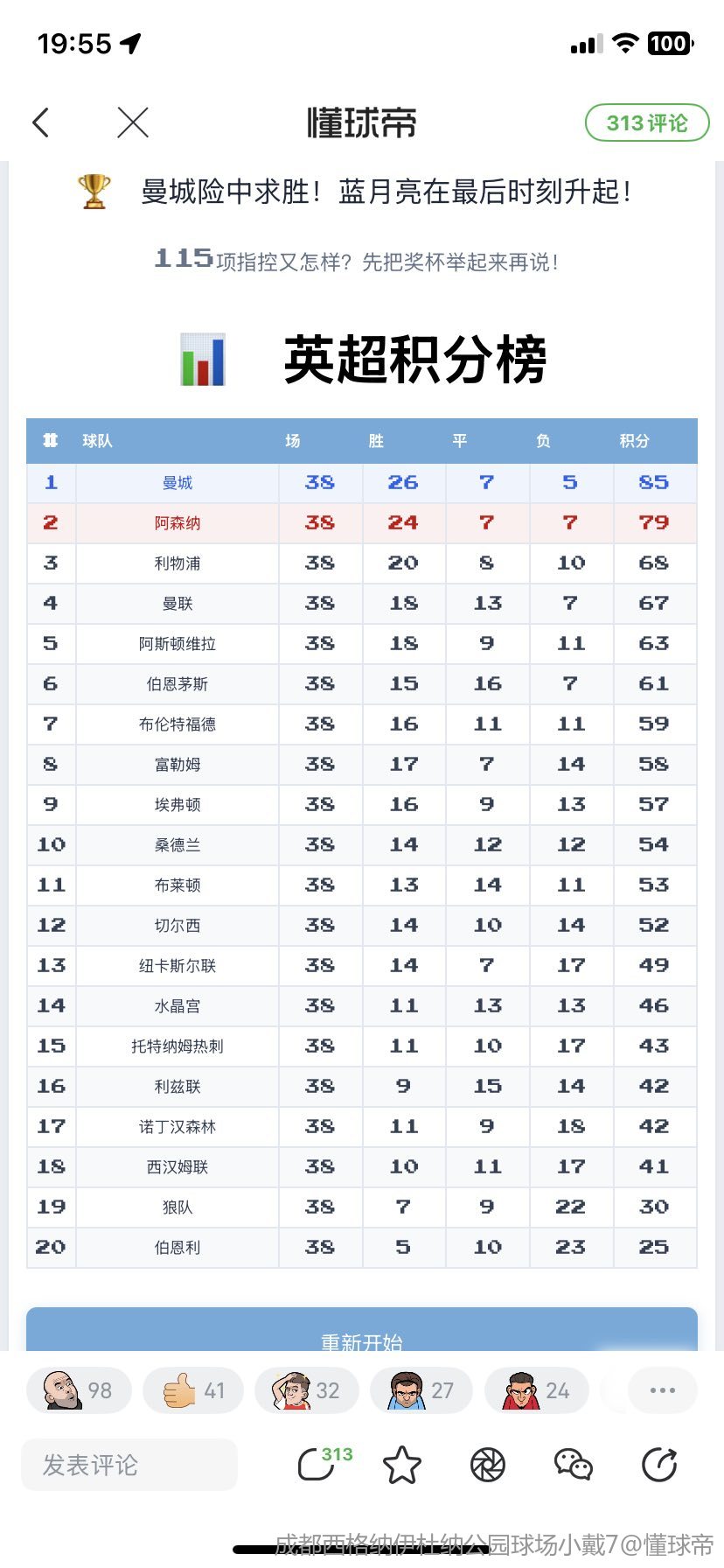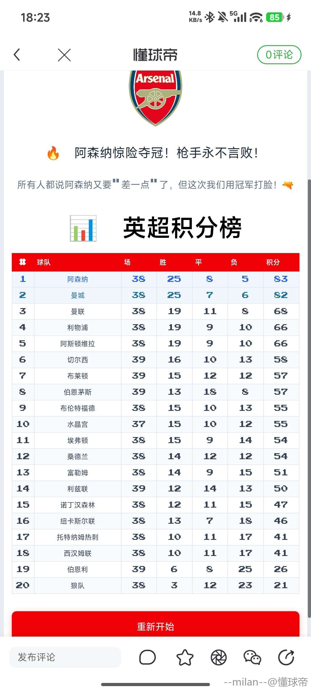 扫描下载懂球帝首页>动态> 🔥谁是冠军?英超争冠小游戏启动!🏆冠军归属你来定~