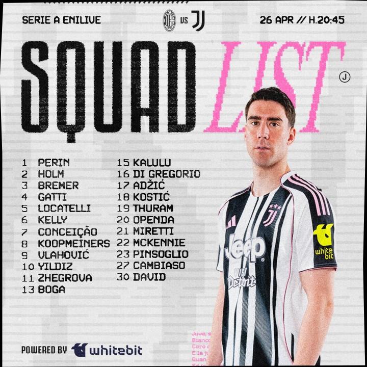 扫描下载懂球帝首页>动态> 尤文客战米兰大名单:弗拉霍维奇、佩林回归,伊尔迪兹在列