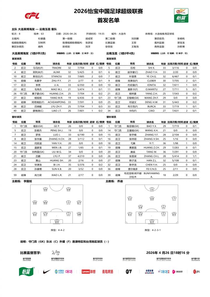 04-26 19:53今日首发阵容[打call][打call]