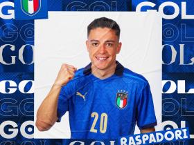 对阵土耳其完成梅开二度,拉斯帕多里是意大利队史第三位