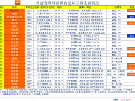 赛季俱乐部上场首发进球助攻黄牌红牌替补