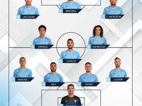 拉齐奥公布对阵萨勒尼塔纳比赛首发名单,希拉赛季首秀