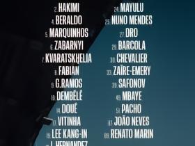 巴黎客战尼斯大名单:阿什拉夫、巴尔科拉、若昂-内维斯缺阵