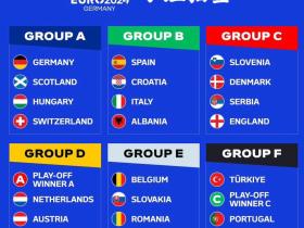 2024年德国欧洲杯分组,24支队伍已落位202...