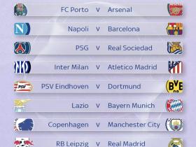 欧冠16强具体对阵:波尔图vs阿森纳那不勒斯vs...