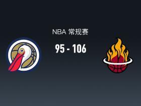 喜提3连胜!NBA热火106-95战胜鹈鹕,阿德巴约24+7