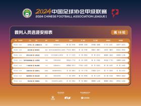 中甲第18轮裁判:梁松尚吹广西vs大连;严立夫吹延边vs南京