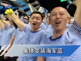徐州队vs泰州队当晚泰州球迷变装海军蓝,提前为人民海军庆生