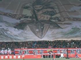 鹿王vs霸王,盐城队球迷展开2300平米巨幅“后羿射日”Tifo